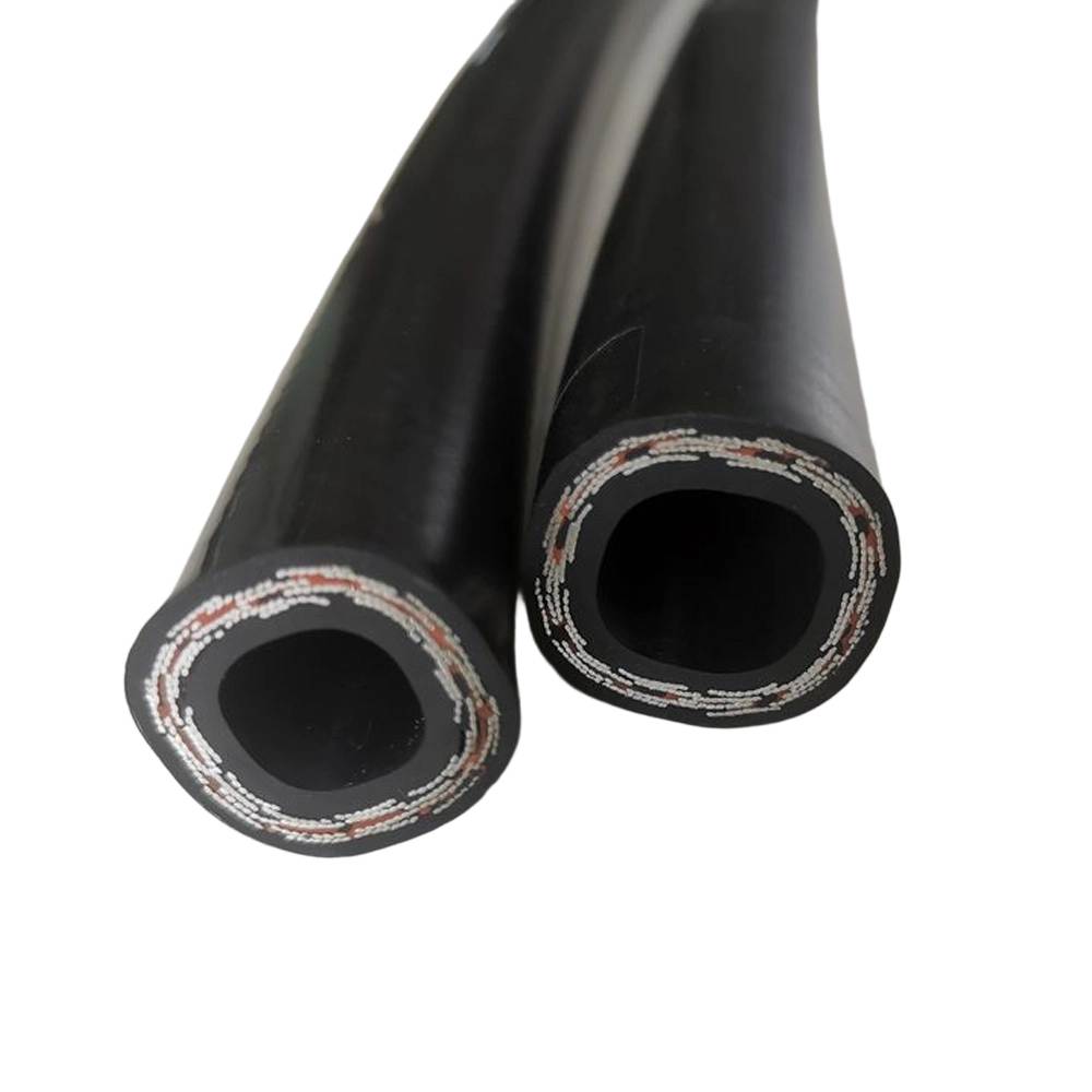 Гидравлический шланг SAE 100 R2 AT, также известный как гидравлический шланг DIN EN 853 2SN, подходит для сельскохозяйственных тракторов, самосвалов и внутризаводского гидравлического оборудования. Его конструкция состоит из трёх слоёв: внутренний слой изготовлен из маслостойкого синтетического каучука, что обеспечивает плавную транспортировку гидравлических жидкостей. Армирующий слой состоит из двух высокопрочных плетёных стальных проволок, что делает шланг прочным и устойчивым к высокому давлению. Внешняя оболочка изготовлена из высококачественного синтетического каучука, устойчивого к атмосферным воздействиям, озону, коррозии, истиранию, старению, солнечному свету и порезам. Шланг можно обжать, не снимая внешнего резинового слоя.