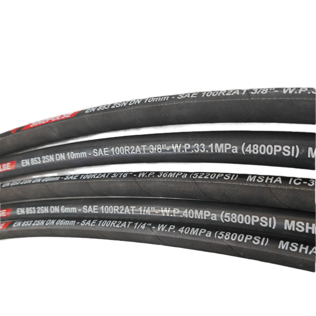 SAE100r2at входит в стандарт SAE (Общество инженеров-автомобилестроителей) для гидравлических шлангов, а буква «AT» в обозначении шланга R2AT обозначает тип A и тип T. Это означает, что шланг подходит для подачи гидравлической жидкости и устойчив к истиранию. Шланг R2AT — это особый тип шланга в категории R2, имеющий две оплетки из стальной проволоки и внутреннюю трубку из синтетического каучука. Он в основном используется в промышленных и коммерческих системах высокого давления для транспортировки гидравлических жидкостей на нефтяной и водной основе.