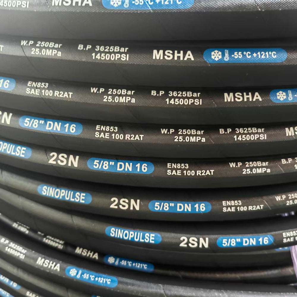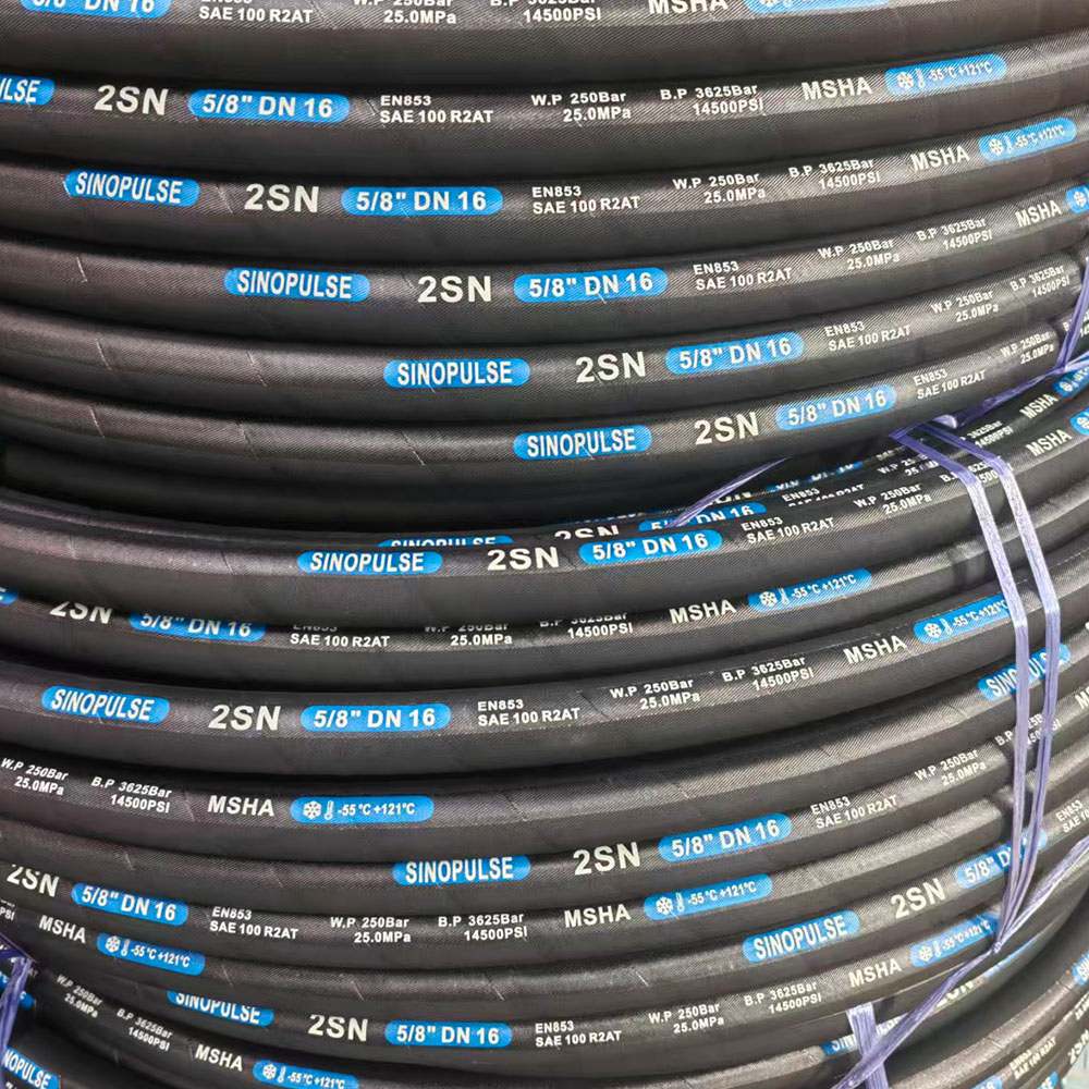Sinopulse, EN853 veya DIN20022 Avrupa standartlarına uygun yüksek basınçlı hidrolik hortumlar (2 SN) sunmaktadır. 2SN yüksek basınç hortumlarımızın tamamı, uzun kullanım ömrü ve kullanım kolaylığı sağlayan yüksek kaliteli malzemeler kullanılarak üretilmektedir. Talep üzerine çeşitli bağlantı parçaları ve hortum uzunlukları mevcuttur.